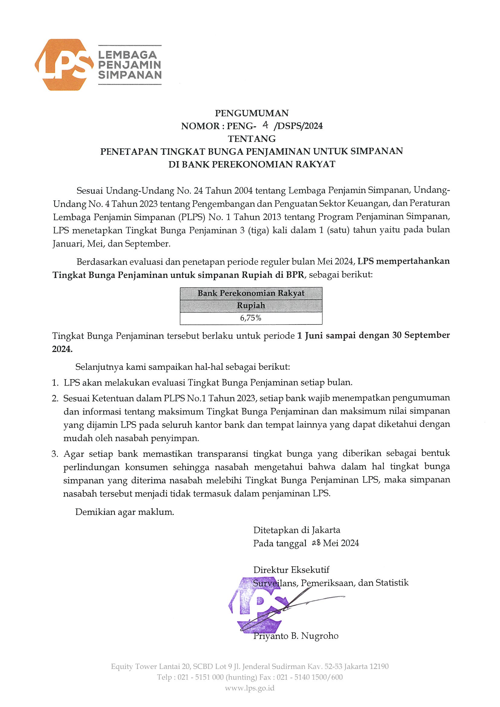 Tingkat Suku Bunga Penjaminan LPS